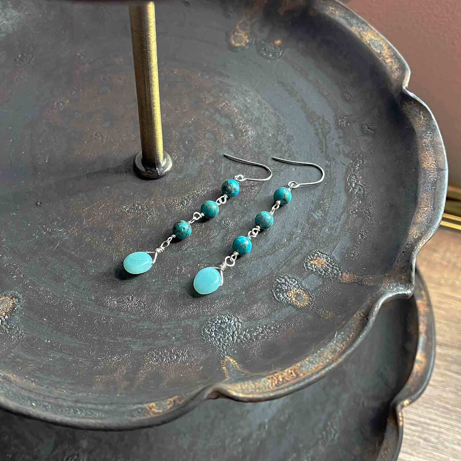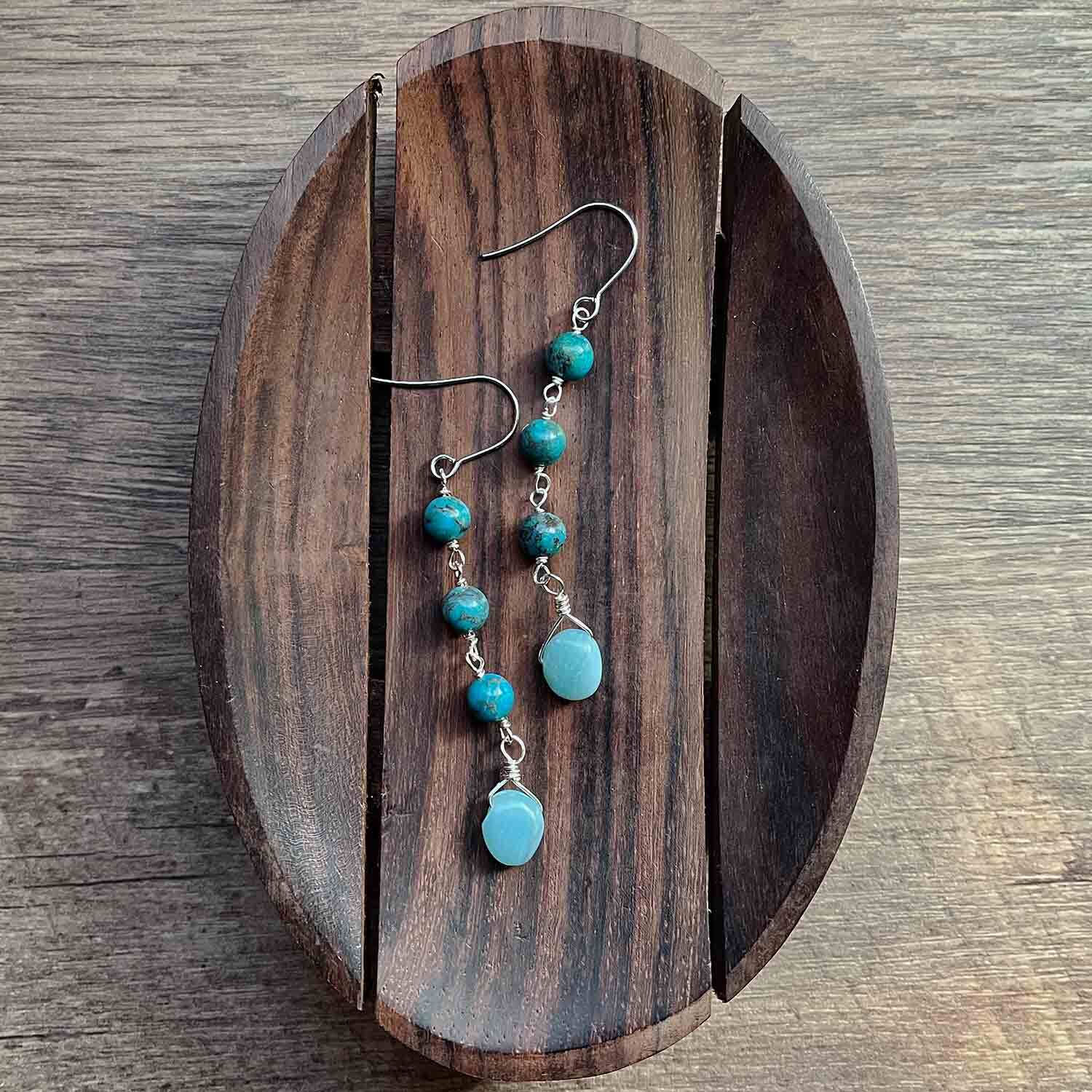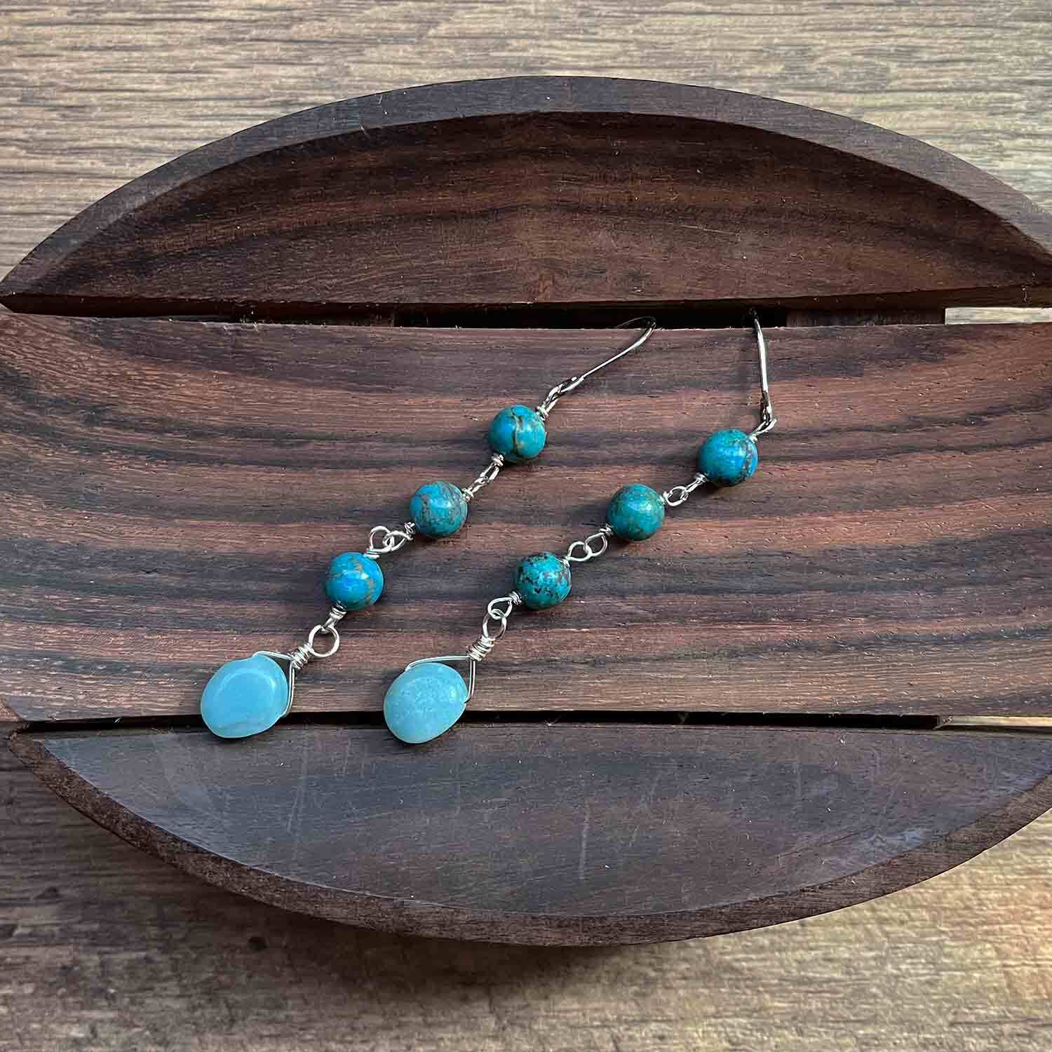 晴れ渡る|03_ターコイズとアマゾナイトのロングピアス (SUS316L)