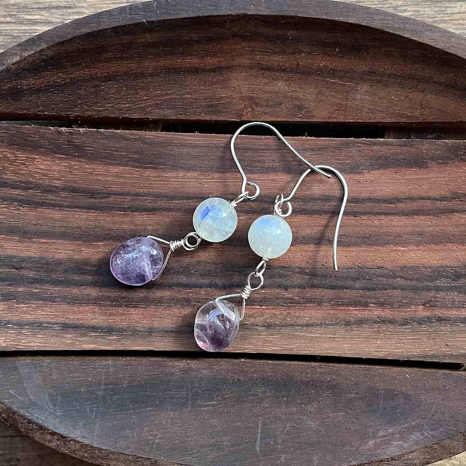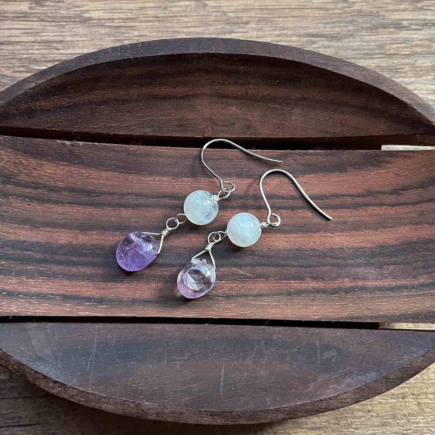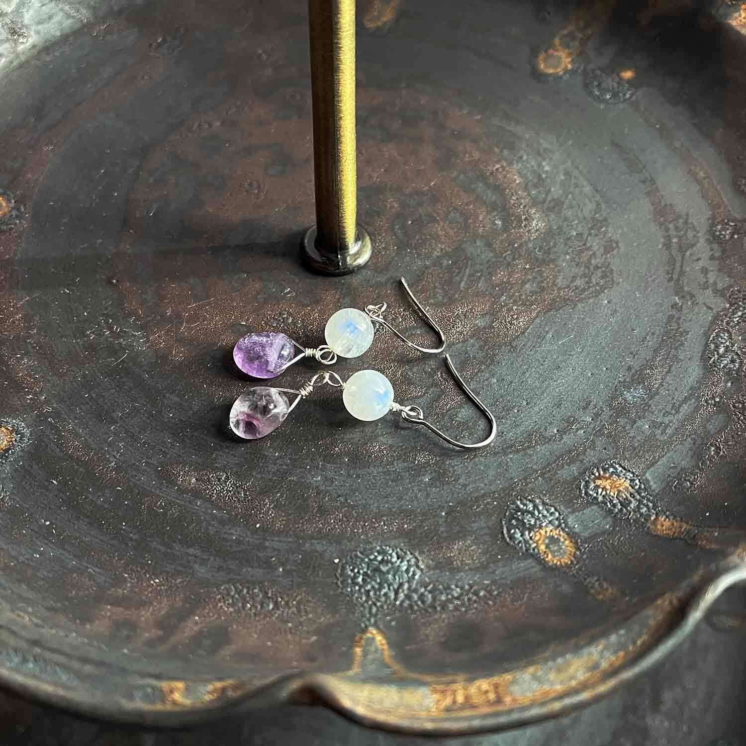 晴れ渡る|05_ブルームーンストーンとラベンダーアメジストのピアス (SUS316L)